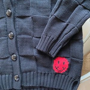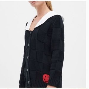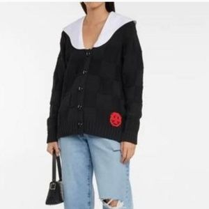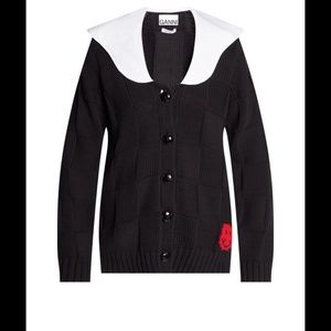 NWT GANNI Smiley Poplin-Collar Black Cardigan - Size Large