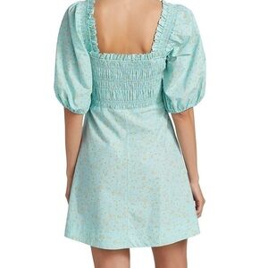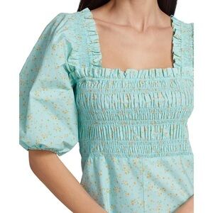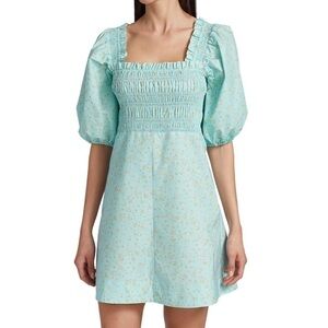 NWT GANNI Smocked Top Regal Puff Sleeve Floral Cotton Mini Dress size 36 / US 4