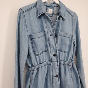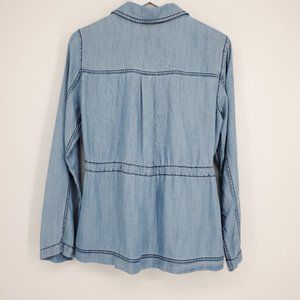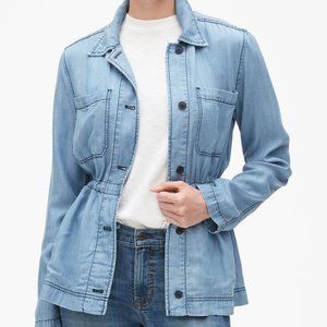 NWT GAP $70 Women Chambray Soft Denim tencel Utility Shirt Jacket in Indigo Blue