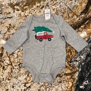 NEW WITH TAGS - SOLD TOGETHER - SIZE 3-6M - This GAP Baby Outfit - Christmas Tree Print Baby Bodysuit and Baby Print Pull-On Pants are perfect for fall! Both are Soft jersey knit and 100% Cotton, Machine Washable - The Bodysuit snaps at inseam for easy dressing and diapering, long sleeves. Crewneck. Allover print. Color: Grey with colorful Christmas Tree/Jeep graphics. The Pull on Pants elastic and drawstring waist, Color: Royal Blue with colorful Christmas Tree/Jeep graphics. I have SIZE 3-6M