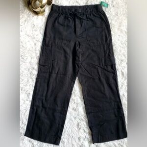 NWT! GAP Black Linen-Blend Wide-Leg Cargo Pull-On Pants - Multiple Sizes 🔹