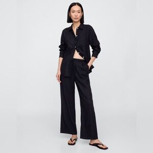 NWT! GAP Black Mid Rise Linen-Blend Pull-On Wide-Leg Pants - Size Large💎