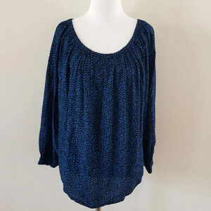 New with Tags Gap off shoulder black long sleeve blouse with blue heart print. Can be worn on shoulder as pictured or off shoulder.