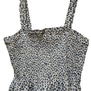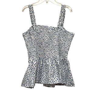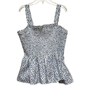 NWT GAP Blue White Ditsy Floral Print Smocked Peplum Cami Tank Top Womens XL