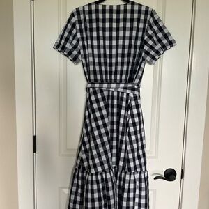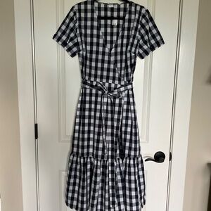 NWT GAP Blue and White Plaid Wrap Ruffled Midi Dress. Skirt fully lined. Tie waist for easy fit. Short sleeves. Flattering V-neck. Side pockets. 100% cotton. Machine wash and dry.