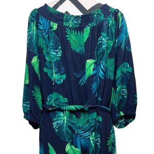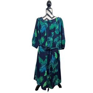 NWT GAP Botanical Leaf Print Sz 3X Tropical Travel Midi Dress.