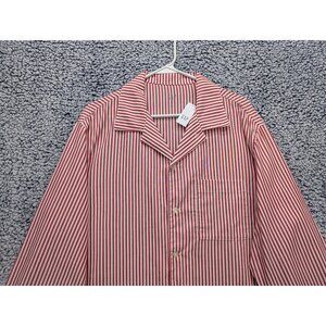NWT GAP Button Up Sleep Poplin Shirt Mens L Striped Long Sleeve Pajama Top Red