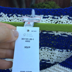 NWT GAP DESIGNED & CRAFTED NAVY/WHITE COTTON STRIPE SLUB V-NECK SWEATER -XS
