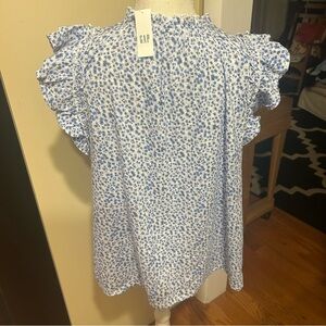 NWT GAP Flutter Sleeve Split Neck Tie Flower Blouse/ Shirt Size Medium