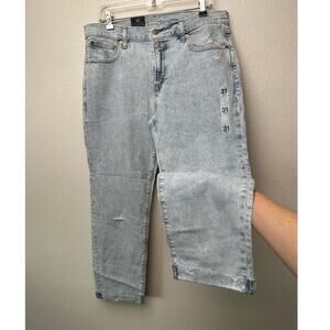 NWT GAP Girlfriend Mid Rise Jeans Gray Acid Wash Women’s 31 Raw Hem