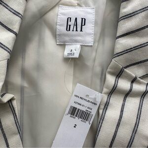 NWT GAP Linen Cotton Blend White Navy Blue Striped Blazer - Size 2