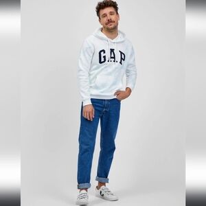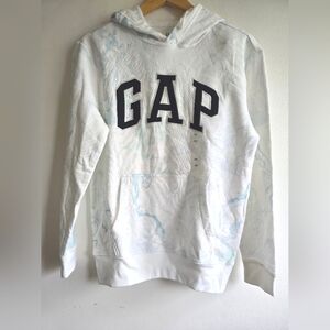 NWT! GAP, Logo Sweatshirt With Hood, White/Blue Swirl, Size XS (Would between woman's S/M)