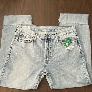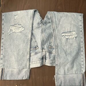 Also, do the jeans have any stains and are they sewn rolled up or did you roll them up yourself?