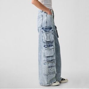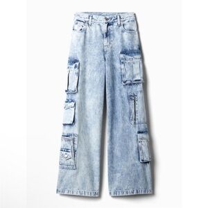 NWT GAP Mid Rise Cargo Baggy Jean in Light Indigo, Size 25 / 0 Petite.
