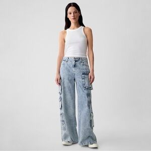 NWT GAP Mid Rise Cargo Baggy Jean Light Indigo 25 Petite