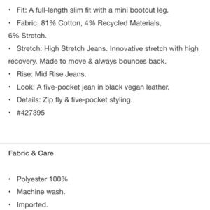 NWT GAP Mid Rise Vegan Leather Baby Boot Black Pants Size 31 / 12R