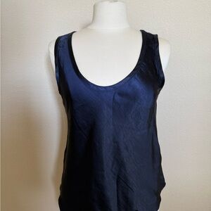 New with Tag - GAP navy tank top style pullover top. The top has the look of silk but is 100% polyester. Machine wash cold/gentle. Measurement from underarm to underarm is 20”. Measurement from shoulder to lowest place in the hemline is 24”. Please see all pictures.
