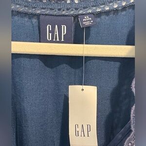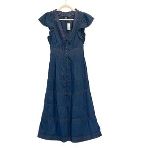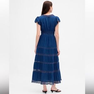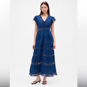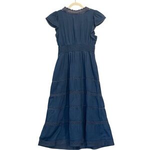 NWT GAP Navy Lace Detail Midi Dress, Blue, Flutter Sleeves, Button Down, Sz. XSP