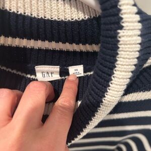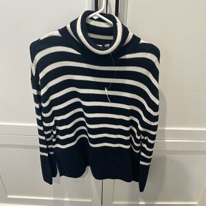 Gorgeous NWT GAP navy blue and cream striped oversized turtleneck sweater. Size XS. Awesome heavyweight sweater. Perfect for fall or winter. Smoke free home.
