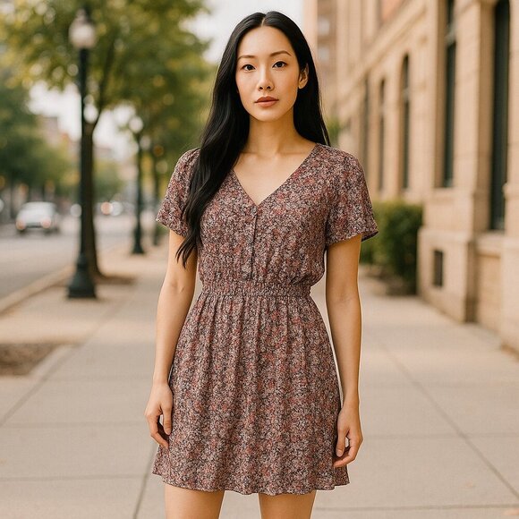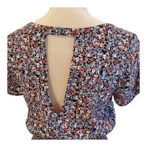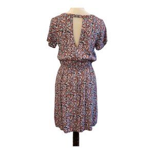 NWT GAP SZ S Short Sleeve V-Neck, Open Back Blue Multi-color Floral Rayon Dress