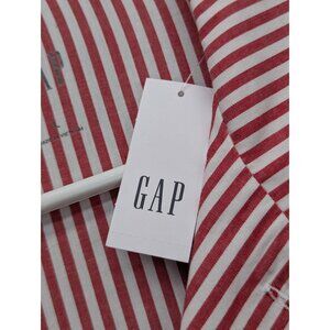 NWT GAP Sleep Poplin Shirt Mens LG Button Up Striped Long Sleeve Pajama Top Red