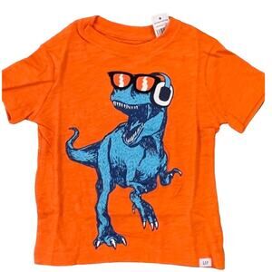 NWT GAP Toddler Orange W/Blue Dinosaur Flip Glasses Graphic Crew T-Shirt