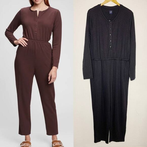 NWT GAP True Black Long Sleeve Henley Sweatshirt Jumpsuit Size XL Tall
