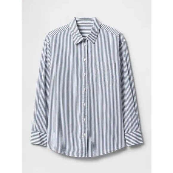 NWT GAP White Blue Striped Cotton Poplin Oversized Button-Up Big Shirt Large