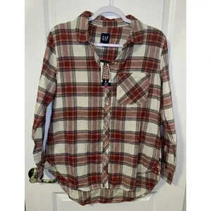 NWT GAP Womens Button Down Long Sleeve Relaxed Fit Boyfriend Flannel Top Size S