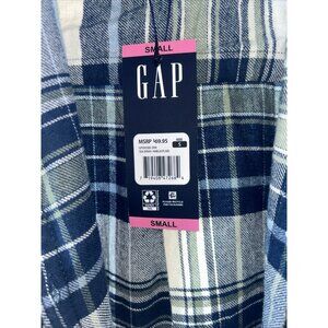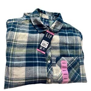 NWT GAP Women's Flannel Shirt Plaid Long Sleeve Button Down Relaxed Fit Blue Grn