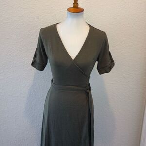 NWT GAP knit moss green wrap dress XS knot sleeve