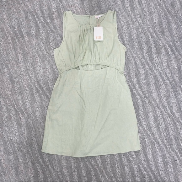 NWT GB mint sleeveless dress with cutout detail. 55% cotton, 45% linen, size L.