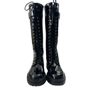 NWT GB Sky-Scraper Vegan Patent Lug Sole Platform Lace-Up Tall Boots 9.5…