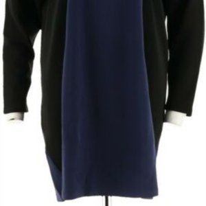 NWT (NEW WITH TAGS) GEORGE KOTSIOPOULOS 3/4 SLEEVE COLOR-BLOCK CREW KNIT TUNIC SIZE MEDIUM. COLORS ARE NAVY & BLACK.