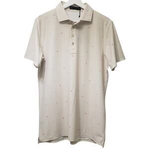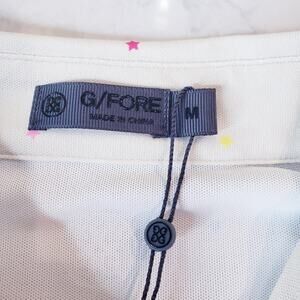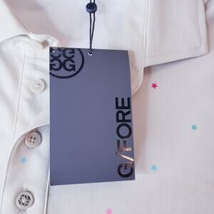 NWT G/FORE Short Sleeve Polo Golf Shirt All Over Star Print Cream & Multicolor