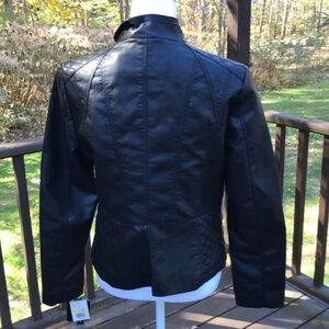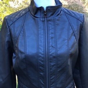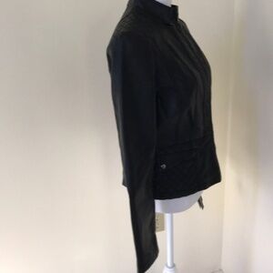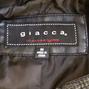 New! GIACCA size medium black quilted Zippered faux leather jacket with two Front Pockets.