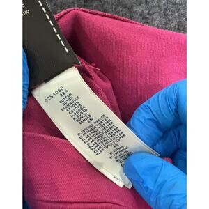 These are NWT Giambattista Valli x 7 For All Mankind pink cotton pants in size 26. They feature a side zipper, high rise, and a 35-inch inseam. The pants have a solid pattern and are designed for women with a regular size type. Made of cotton, they include zipper accents for added style.