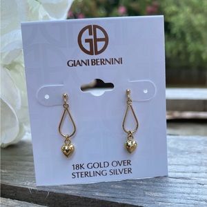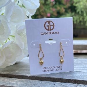 NWT GIANI BERNINI 18K GOLD HEART POST DROP EARRINGS