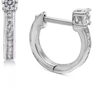 NWT GIANI BERNINI Small CZ Huggie Hoop Earrings in Sterling Silver, 0.5"