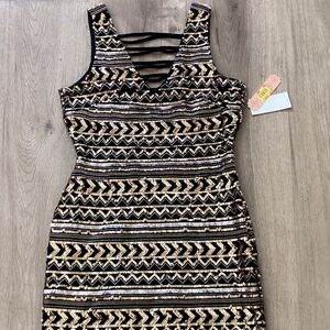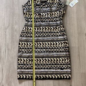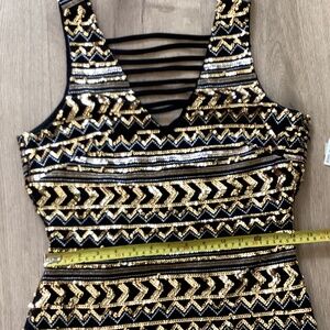 NWT GIANNI BINI GB BLACK AND GOLD SEQUENCE EMBELLISHED COCKTAIL DRESS SZ M