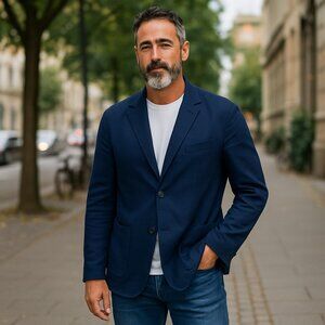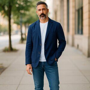 NWT GIASONE MEN'S NAVY BLUE POLYESTER-COTTON BLEND LIGHT SPORTS BLAZER XXL