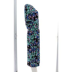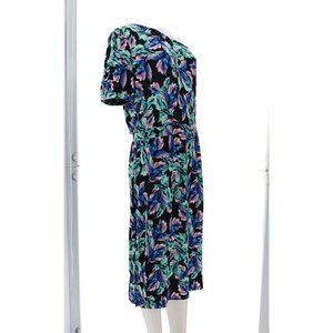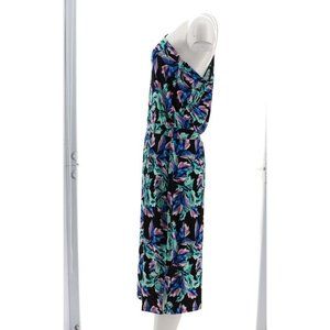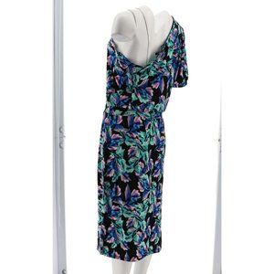 NWT G.I.L.I. ONE SHOULDER PRINTED KNIT DRESS BLACK FLORAL LARGE