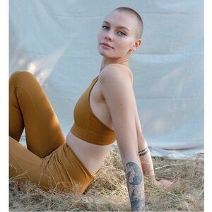 NWT GIRLFRIEND COLLECTIVE Mustard Sleeveless Racerback Tank Bra Crop Top XS