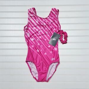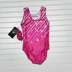 NWT GK Elite Pink Gem Gymnastics Leotard, size AS, pinks with with white gem design, includes foiltex scrunchie.
