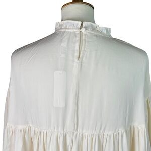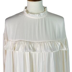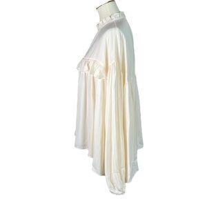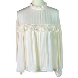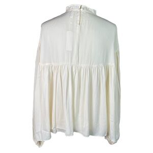 NWT GLAM Cream High Neck Balloon Long Sleeve Blouse Top - Size Large