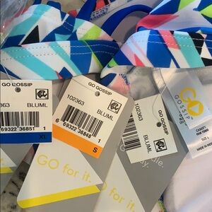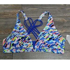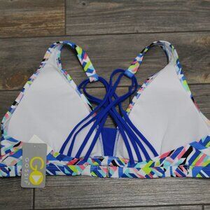 NWT GO Gossip Swimsuit Top S L or XL Crossed Signals Strappy Swim Sports Bra