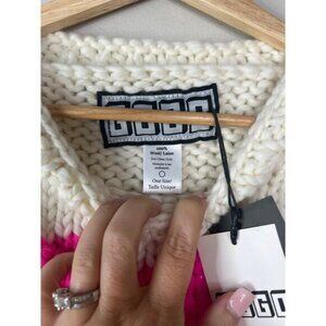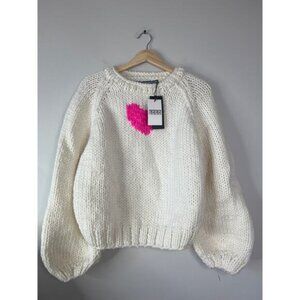 NWT GOGO Heart Pullover Chunky Knit Wool Crew-Neckline Sweater Cream One Size