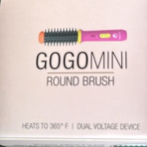 Achieve smooth volume and soft curls effortlessly with the GOGOMINI Round Brush. This compact styling tool in yelllow and pink is perfect for easy touch-ups on the go. Experience the convenience of dual voltage and a heat setting up to 365°F.