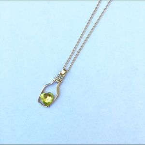 NWT! GOLD & GREEN HEART IN A BOTTLE NECKLACE