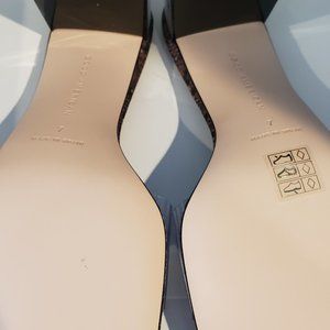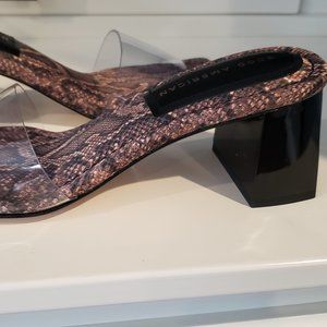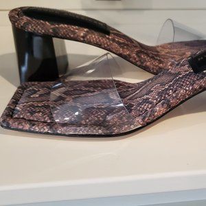 NWT: GOOD AMERICAN Block Heel Slide Sandal In Desert Snake Size 7